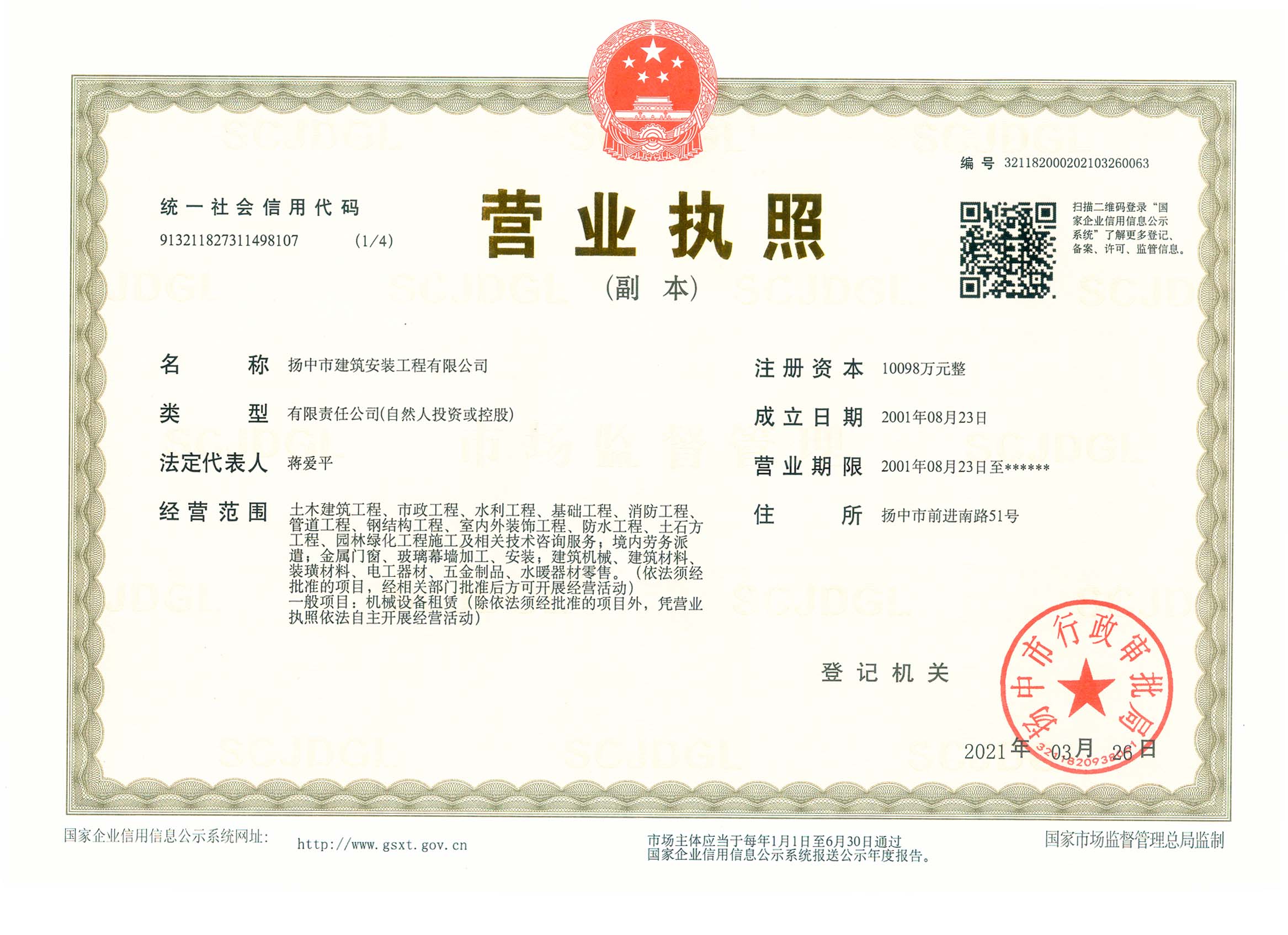 揚(yáng)中市建筑安裝工程有限公司的前身是成立于1955年的揚(yáng)中市建筑安裝工程總公司,從揚(yáng)中第一代建筑人開創(chuàng)了揚(yáng)中建筑業(yè)以來,經(jīng)過60多年的艱苦創(chuàng)業(yè),企業(yè)的綜合實(shí)力不斷發(fā)展、壯大。公司現(xiàn)有職工1688人,有職稱的技術(shù)經(jīng)濟(jì)人員308人,其中具有高級(jí)職稱的14人,具有中級(jí)職稱的69人,一級(jí)項(xiàng)目經(jīng)理15人,二級(jí)項(xiàng)目經(jīng)理18人。擁有固定資產(chǎn)7000萬元,注冊(cè)資本10098萬元,施工機(jī)械設(shè)備519臺(tái) (套),年施工產(chǎn)值6億元。 揚(yáng)中市建筑安裝工程有限公司是房屋建筑工程施工總承包國家一級(jí)和市政公用工程施工總承包國家一級(jí)資質(zhì)施工企業(yè),并具有地基基礎(chǔ)工程專業(yè)承包、起重設(shè)備安裝工程專業(yè)承包、建筑裝修裝飾工程專業(yè)承包、消防設(shè)施工程專業(yè)承包、建筑機(jī)電安裝工程專業(yè)承包、鋼結(jié)構(gòu)工程專業(yè)承包等資質(zhì),在上海、南京、鎮(zhèn)江、蘇州、常州、沭陽、蕪湖、湖北襄陽等地設(shè)有分公司。60多年來,公司承建了一大批工業(yè)與民用建筑,為地方經(jīng)濟(jì)和...